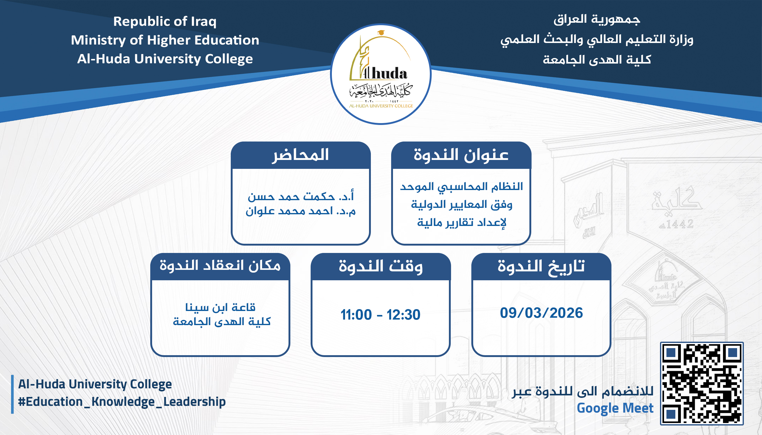 Under the patronage of the respected Dean of Al-Huda College, Professor Dr. Abdul-Ilah Thabet Muhammad
